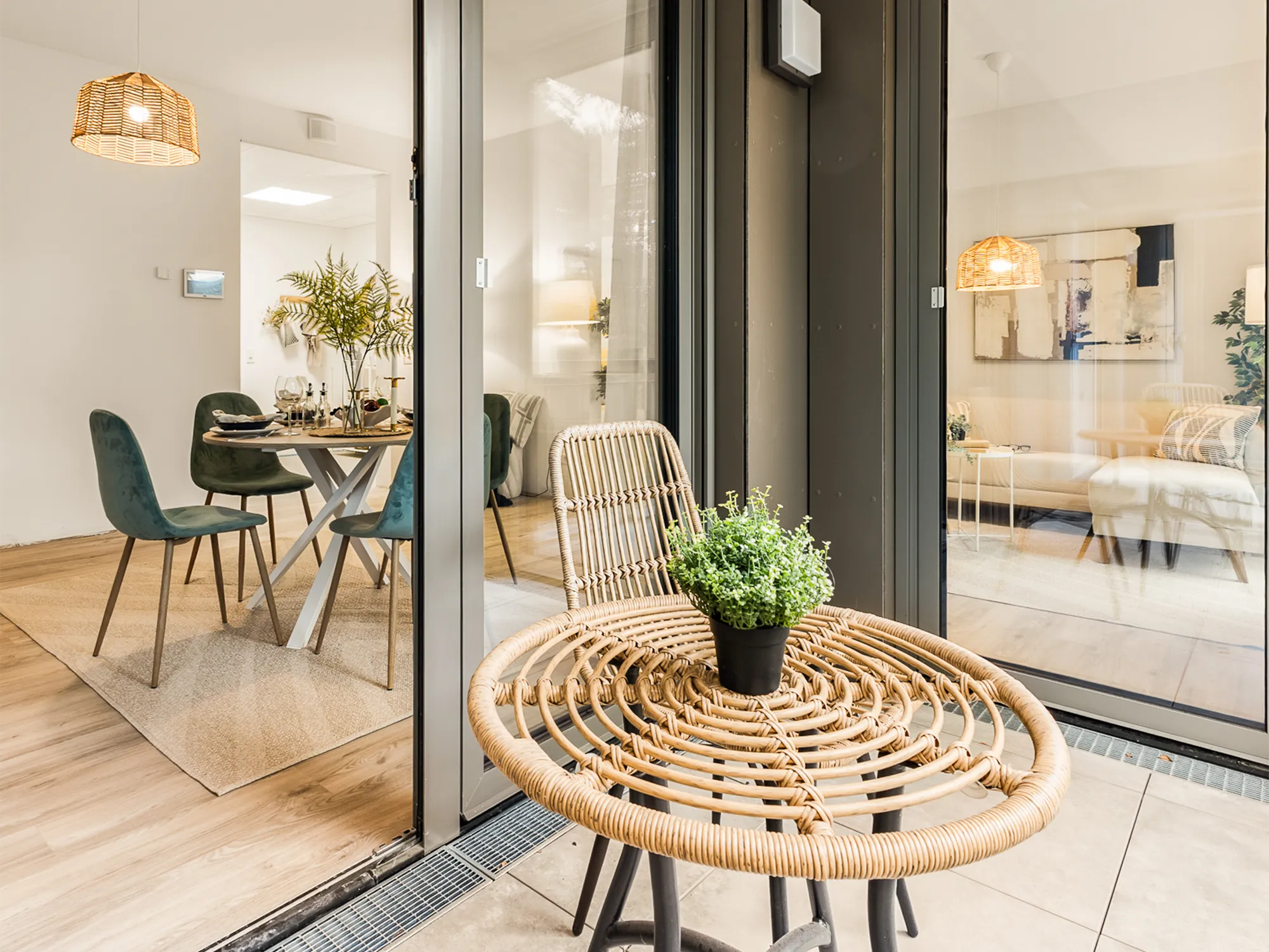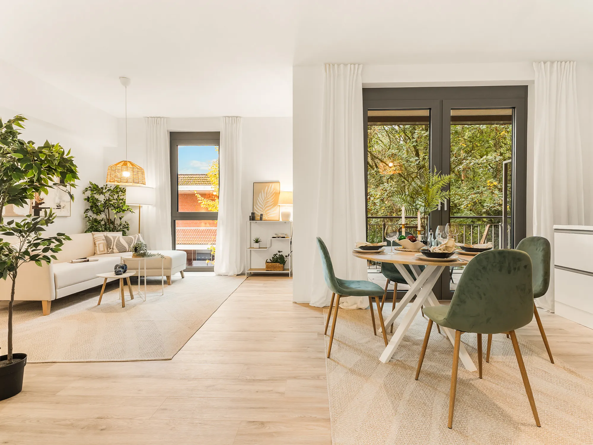 Die Grundrissvarianten der Wohnungen sind sorgfältig geplant und bieten den Bewohnern ein Höchstmaß an Komfort. Mit bis zu 3 Zimmern sowie Wohn-, Nutz- und Gemeinschaftsflächen zwischen ca. 34 und 97 m² sind diese ideal auf die Bedürfnisse von Alleinlebenden und Paaren zugeschnitten – ganz gleich, ob jung oder alt. Durch die durchdachte Gestaltung bieten sie sowohl jungen Berufstätigen als auch Senioren ein komfortables und sicheres Zuhause. Bodentiefe Fenster- und Balkontüren sorgen für eine helle, wohlige Wohnatmosphäre. Zusätzlich ermöglichen Balkone und Dachterrassen entspannte Sonnenstunden.