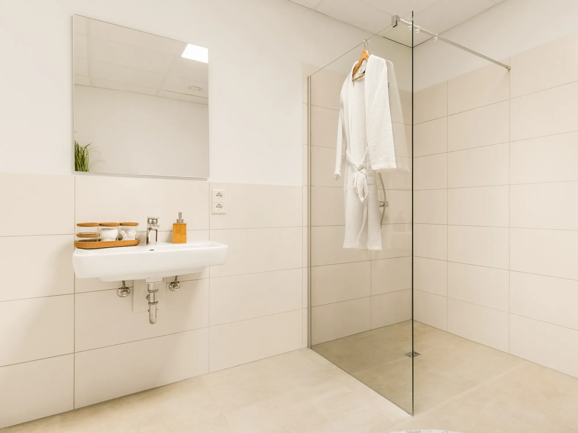 Alle Wohnungen überzeugen mit zeitlosen Materialien und hochwertiger Ausstattung. Helle Wohnbereiche mit Zugang zur Loggia oder dem Balkon, geräumige Bäder mit ebenerdiger Dusche sowie vollflächig verlegte Fußbodenheizung schaffen ein angenehmes Raumklima. Hochwertige Bodenbeläge, dreifachverglaste Fenster, elektrische Verdunklungen und eine Video-Türsprechanlage bieten Komfort und Sicherheit.